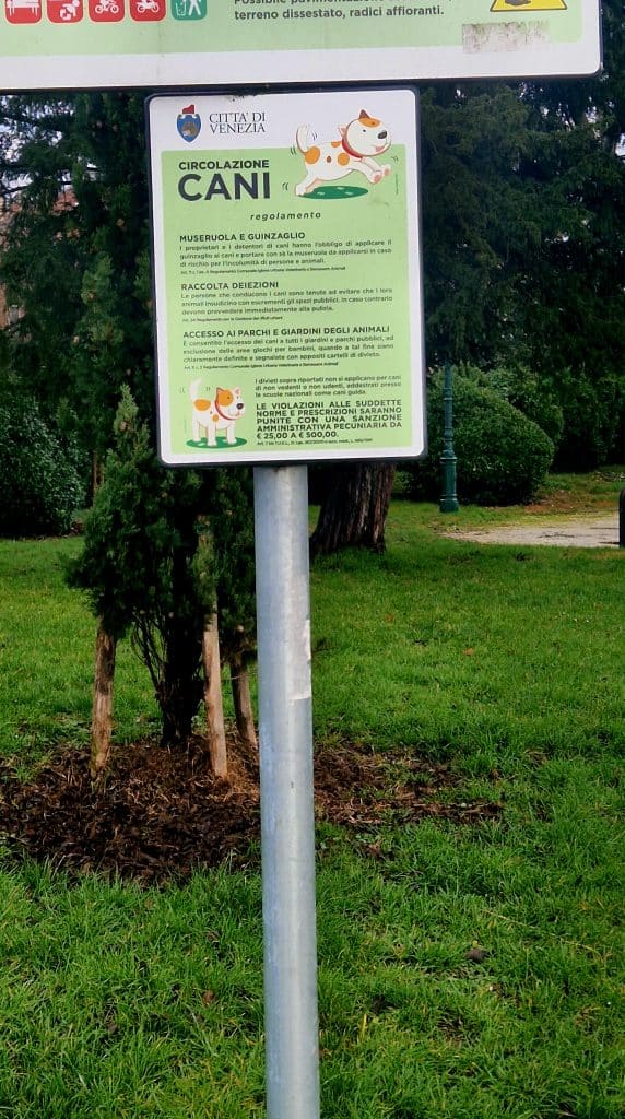 In many public parks in Venice, these rules are clearly displayed on official municipal signs, like the one shown here.