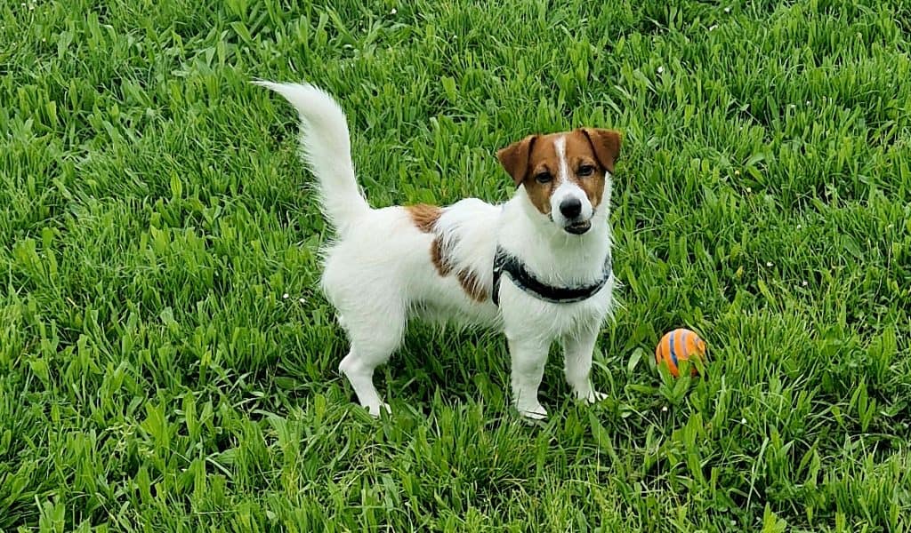 Jack, my dog, in one of the rare green areas in Venice — a small but important part of everyday life in dog-friendly Venice — where even small green spaces become essential.