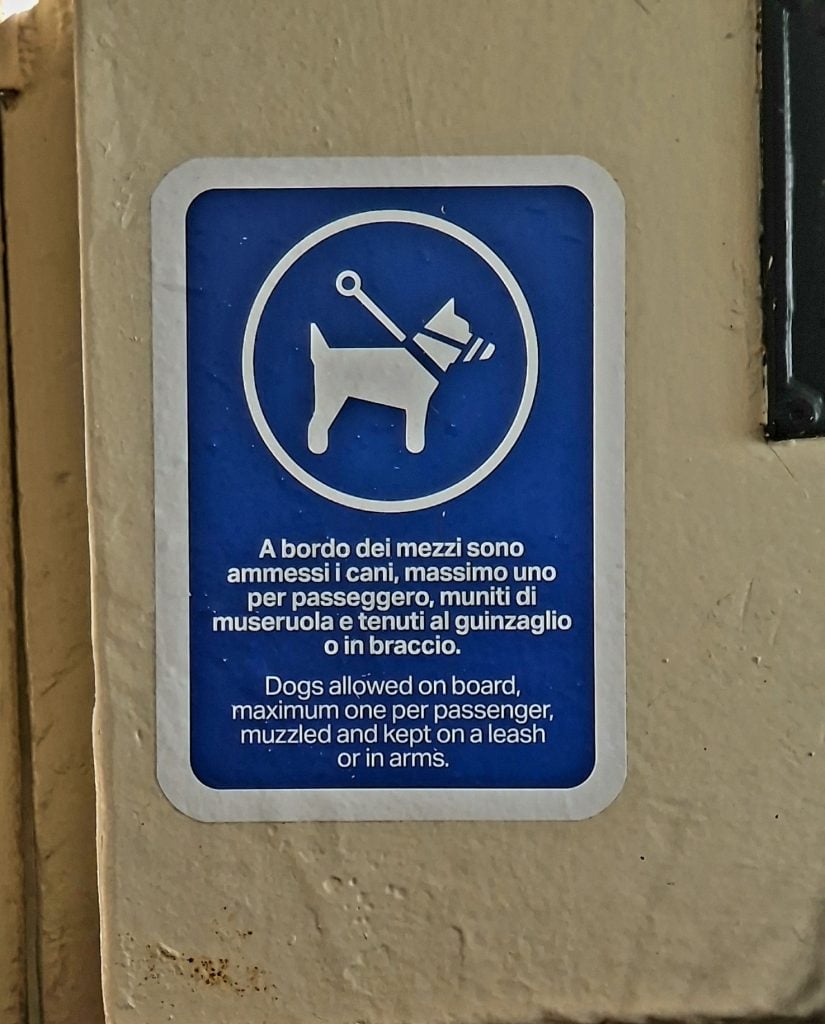 On ACTV public transport, dogs must be muzzled and kept on a leash, unless they are carried in your arms.