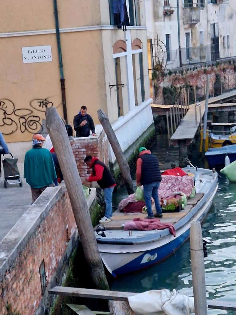 Fresh vegetables arriving by boat from Santโ€™Erasmo โ€” Venice still depends on its lagoon islands for daily food supply.