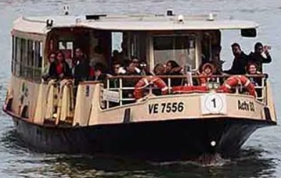 Venice has no cars โ the vaporetto (public waterbus) is the main public transportation system.