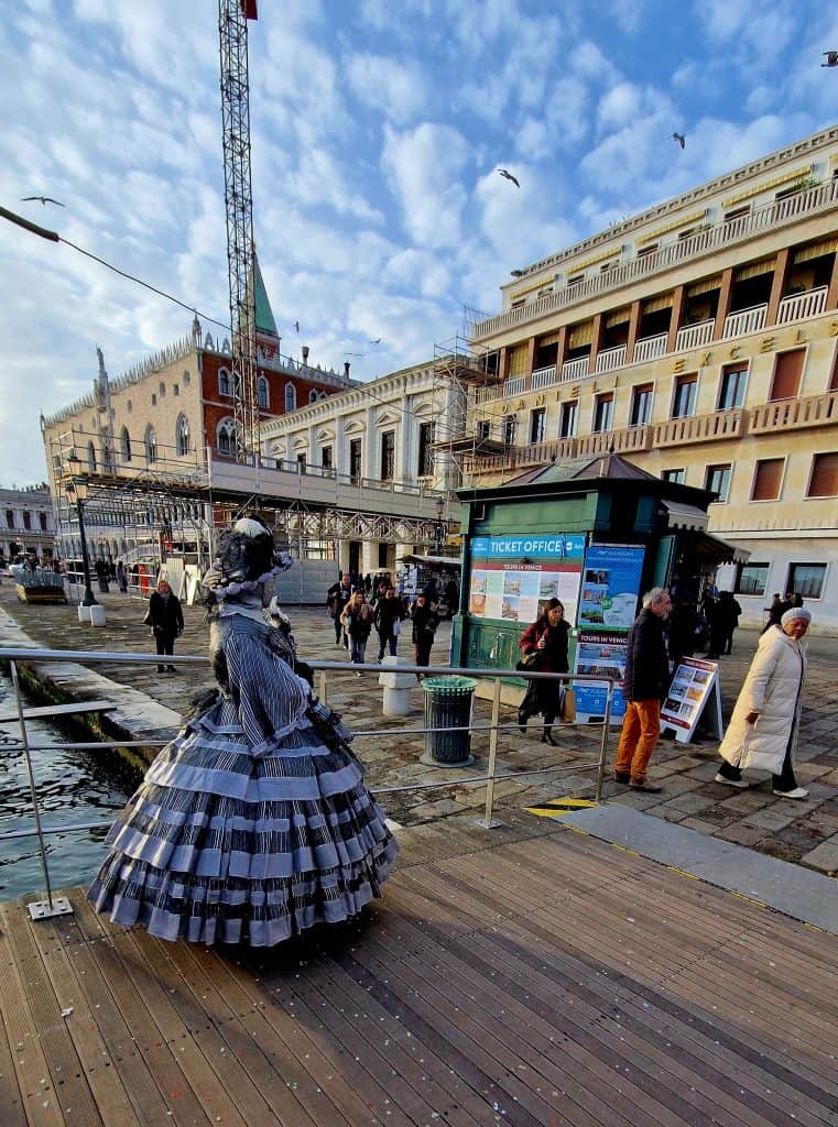 Quieter zones during Carnival include Castello (past San Zaccaria), the Fondamente of Cannaregio, and parts of Dorsoduro.