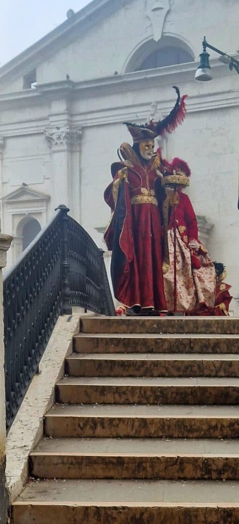 Early morning (7:00–10:00) is the best moment to enjoy the Carnival. Many of the most elegant masks come out at sunrise for photos in the soft lagoon light.