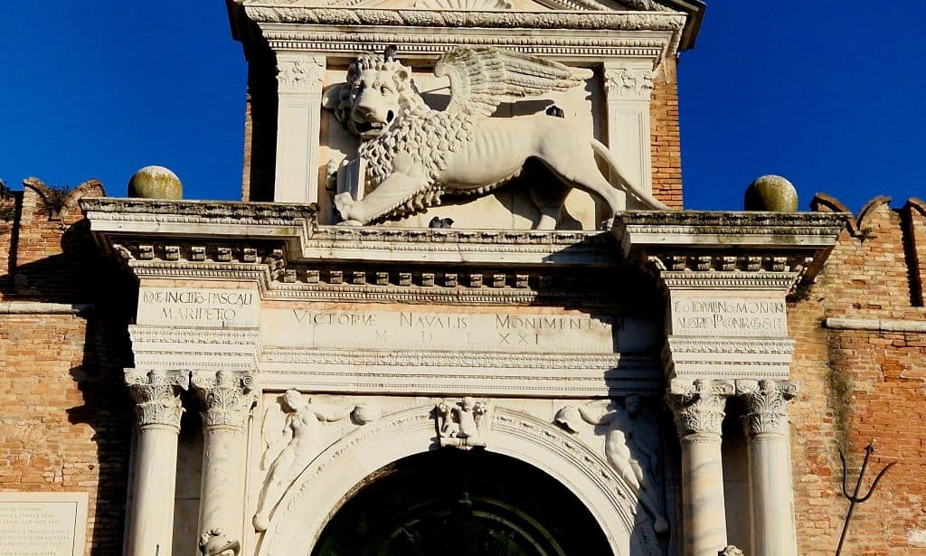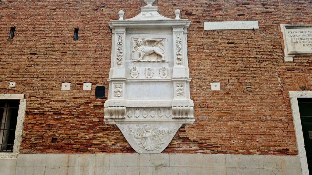 Just after the bridge, on the opposite side of the main Arsenal gate, you’ll spot another Lion of Saint Mark carved into the brick wall.
